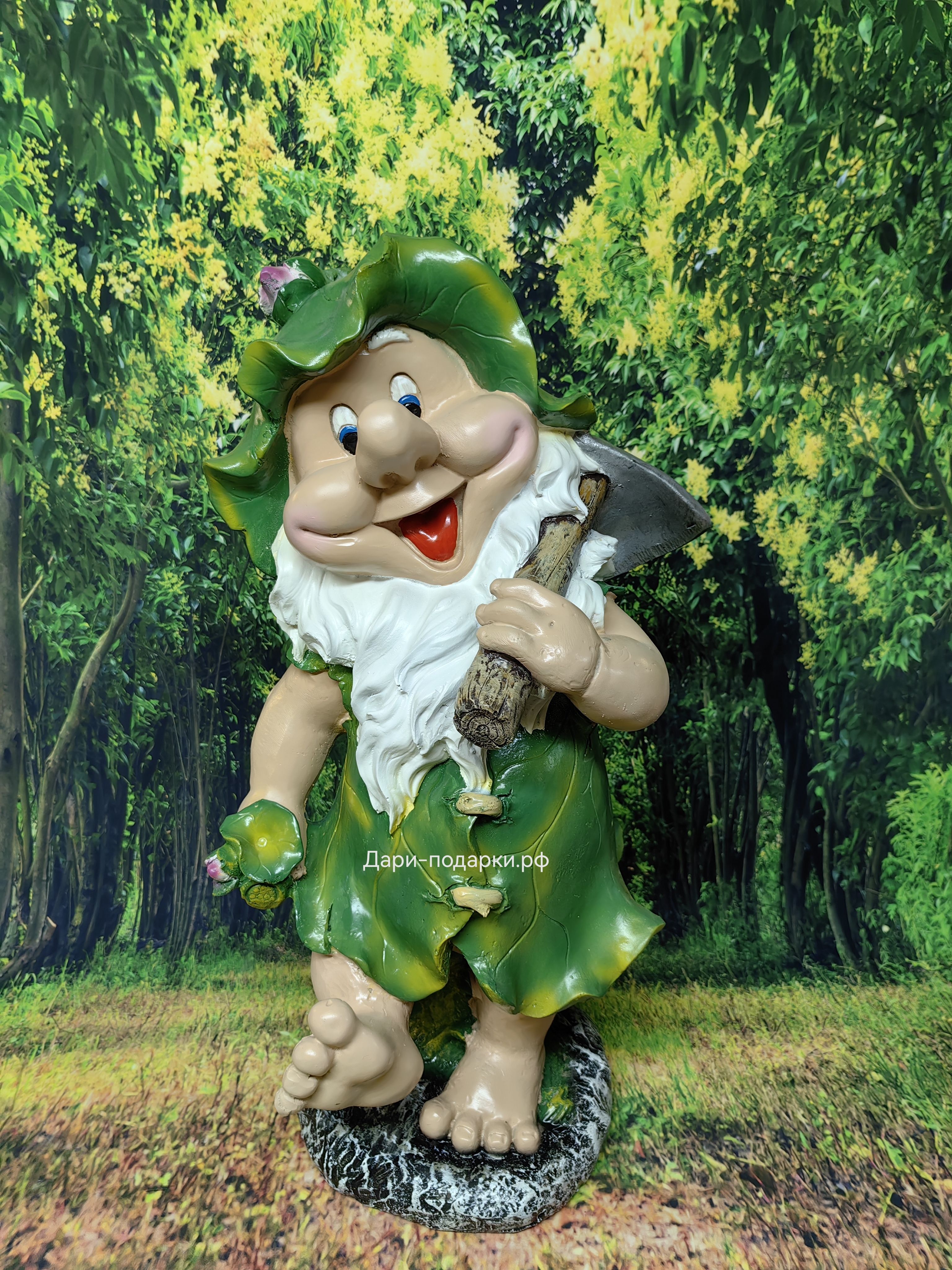 Садовая фигура изготовлена русскими мастерами из современного экологичного материала - полистоуна. Полистоун — это искусственный камень, состоящий из акриловых смол, гидроксида алюминия, измельченного натурального камня, пигментов и других добавок. Полистоун не боится влаги и перепадов температур, поэтому фигуры из полистоуна прекрасно украсят Ваш дом и участок, а так же будут радовать Вас долгое время своей красотой.