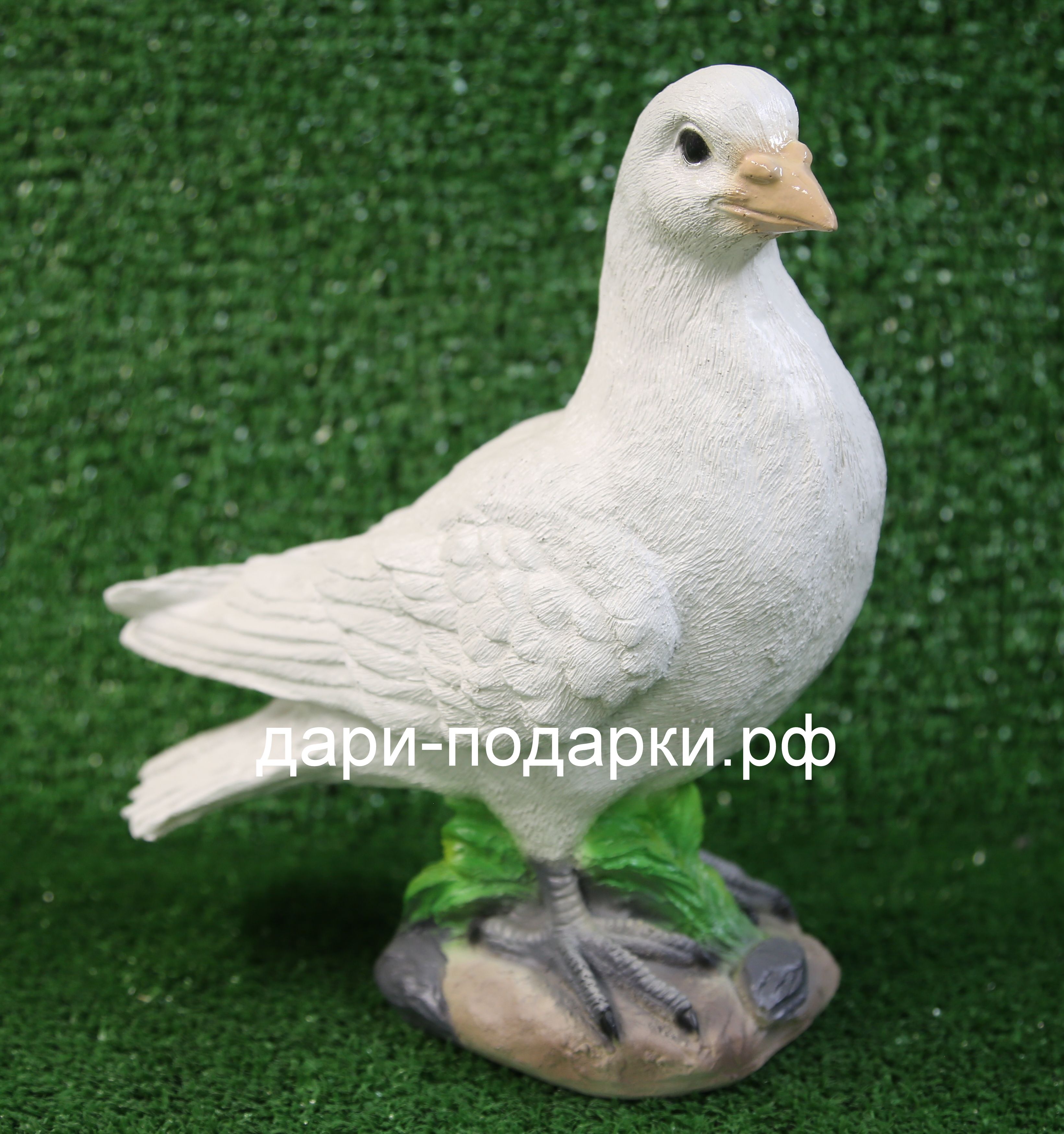 Садовая фигура ГОЛУБЬ изготовлена русскими мастерами из современного экологичного материала - полистоуна. Полистоун — это искусственный камень, состоящий из эпоксидных смол, оксида алюминия, измельченного натурального камня, пигментов и других добавок. Полистоун не боится влаги и перепадов температур, поэтому фигуры из полистоуна прекрасно украсят Ваш дом и участок, а так же будут радовать Вас долгое время своей красотой.