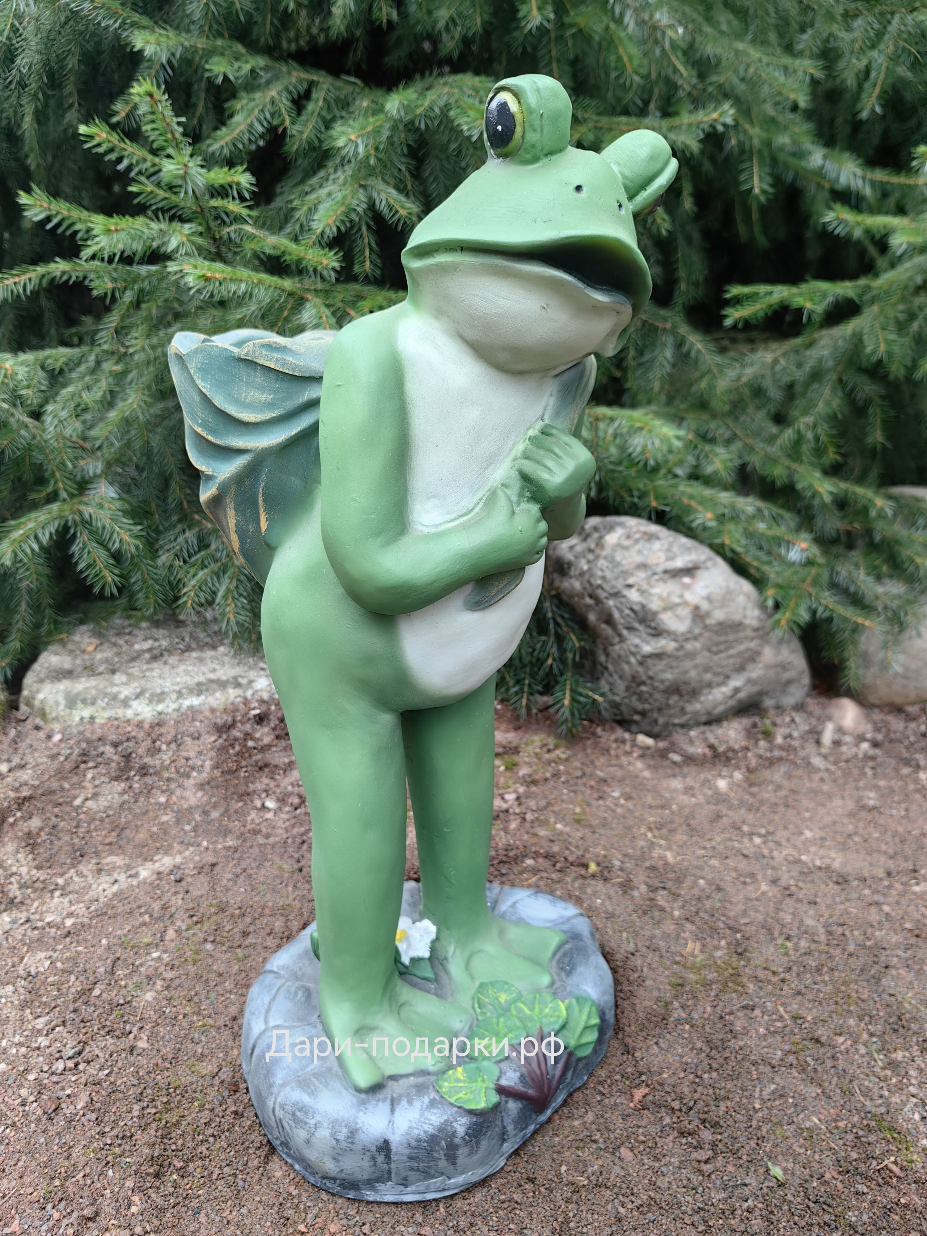 Садовая фигура изготовлена русскими мастерами из современного экологичного материала - полистоуна. Полистоун — это искусственный камень, состоящий из акриловых смол, гидроксида алюминия, измельченного натурального камня, пигментов и других добавок. Полистоун не боится влаги и перепадов температур, поэтому фигуры из полистоуна прекрасно украсят Ваш дом и участок, а так же будут радовать Вас долгое время своей красотой.