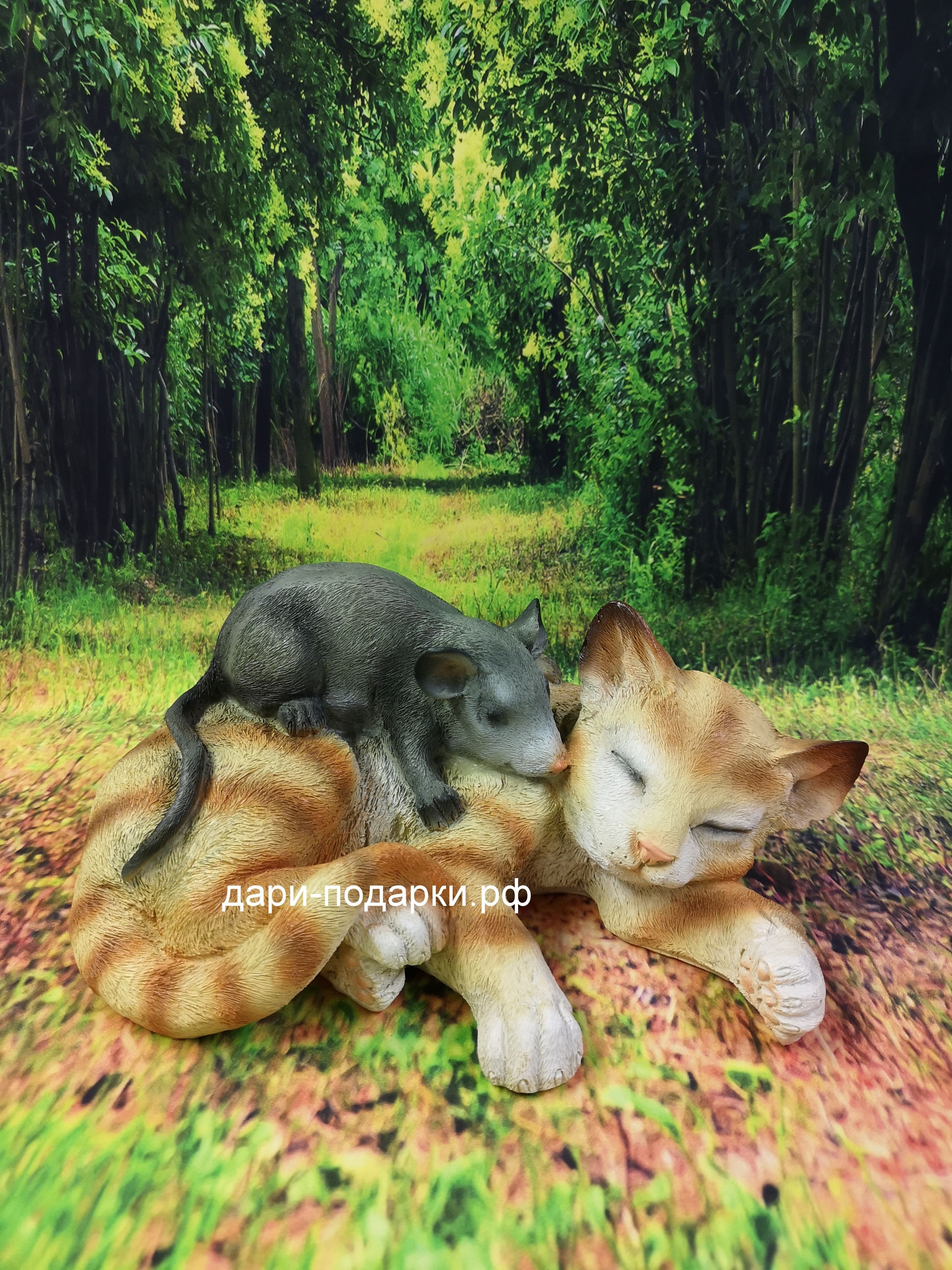 Садовая фигура изготовлена русскими мастерами из современного экологичного материала - полистоуна. Полистоун — это искусственный камень, состоящий из акриловых смол, гидроксида алюминия, измельченного натурального камня, пигментов и других добавок. Полистоун не боится влаги и перепадов температур, поэтому фигуры из полистоуна прекрасно украсят Ваш дом и участок, а так же будут радовать Вас долгое время своей красотой.