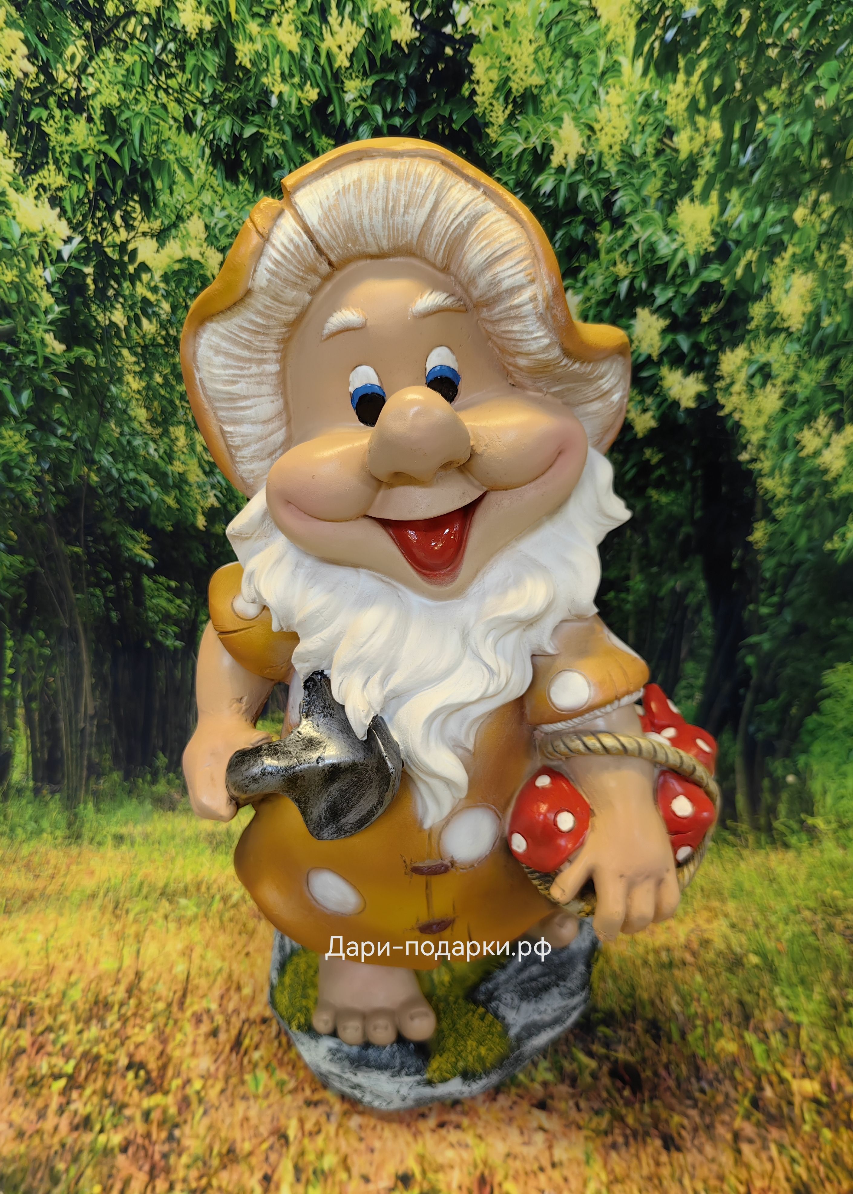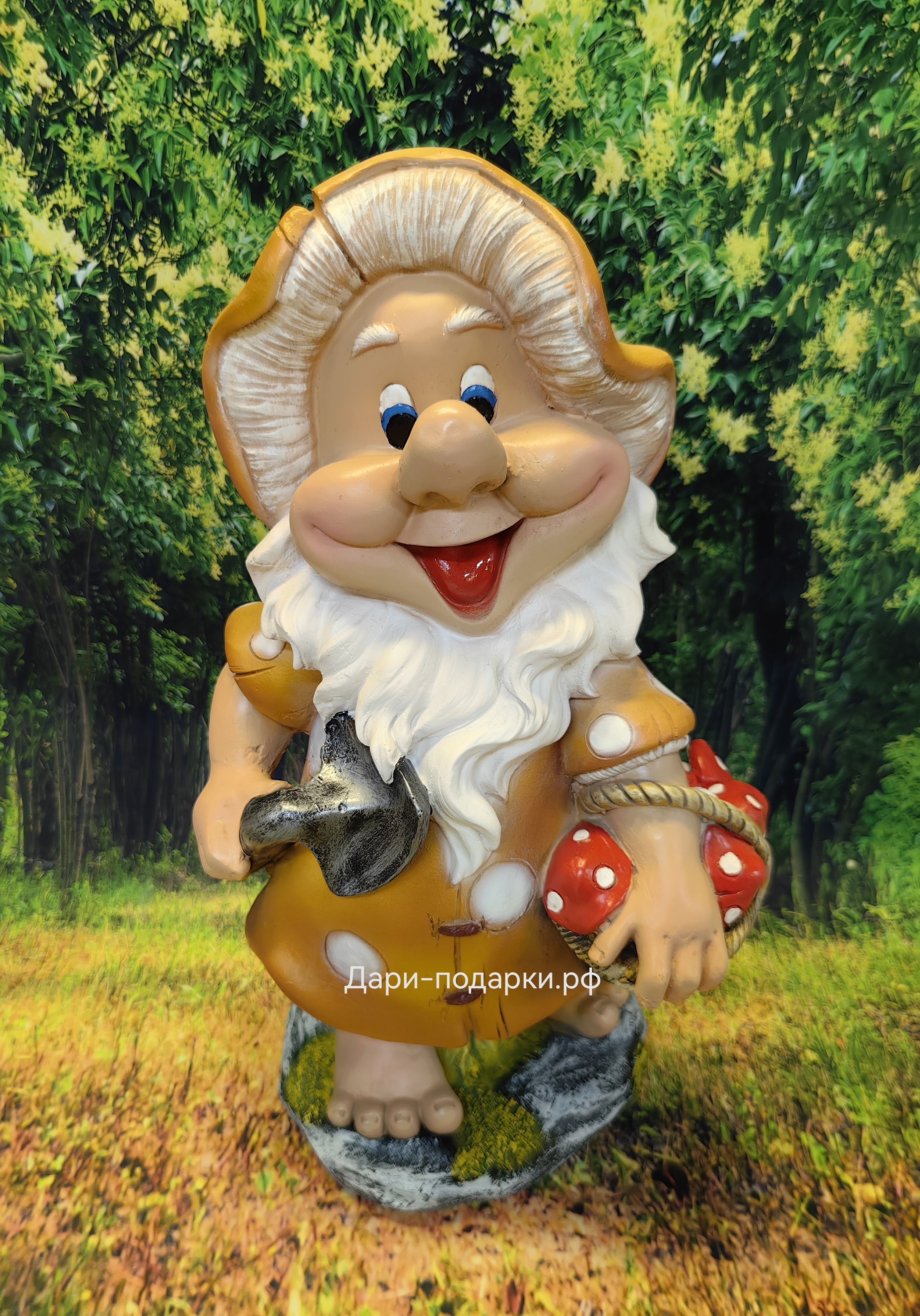 Садовая фигура изготовлена русскими мастерами из современного экологичного материала - полистоуна. Полистоун — это искусственный камень, состоящий из акриловых смол, гидроксида алюминия, измельченного натурального камня, пигментов и других добавок. Полистоун не боится влаги и перепадов температур, поэтому фигуры из полистоуна прекрасно украсят Ваш дом и участок, а так же будут радовать Вас долгое время своей красотой.